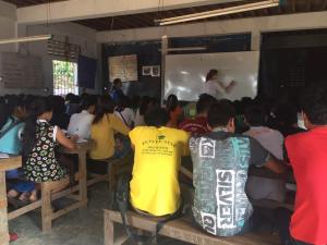 After the ceremony Giri, Mishiah, and I each went to a different building to teach our assigned grades: Mishiah– 5th and 6th, Giri – 8th and 9th, and Cecilia 10th. Seventh grade will be taught this afternoon and college in the evening.