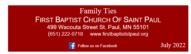 This summer we are going to try something we haven’t done in a long time – an old-fashioned hymn sing service – on July 31st. For this service we will have some special music, a very brief sermon and a whole lot of congregational singing! We are asking people to let us know three of their favorite hymns and we will try to sing as many of them (one or two verses only) as we can! If you have hymns that you would like to suggest we sing on that day please let us know. You can e-mail your suggestions to office@firstbaptiststpaul.org